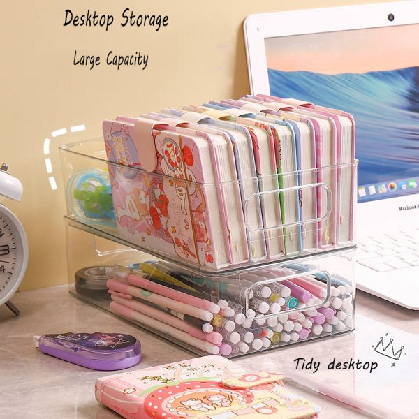 CISIREE Multi-function Countertop Storage Organizer, Desktop Stationery Sundry Transparent Storage Box, Cute Storage Basket, Books Storage Box for Students