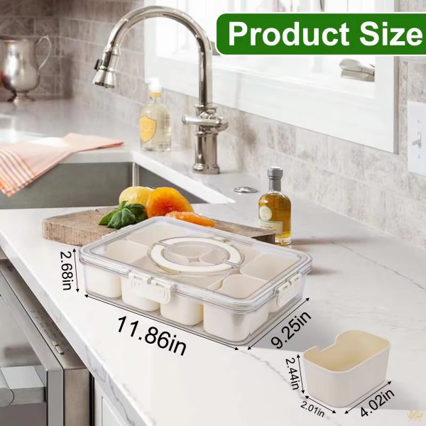 • 【Multi-functional】This is a multi-functional partitioned fresh-keeping box that can also be used as a fruit and snack tray. It designed with 8 removable compartments, each compartment can hold a suitable amount of snack, candy, fruit, nuts, spices and more. And you can take out the compartments to storage larger food if you need.