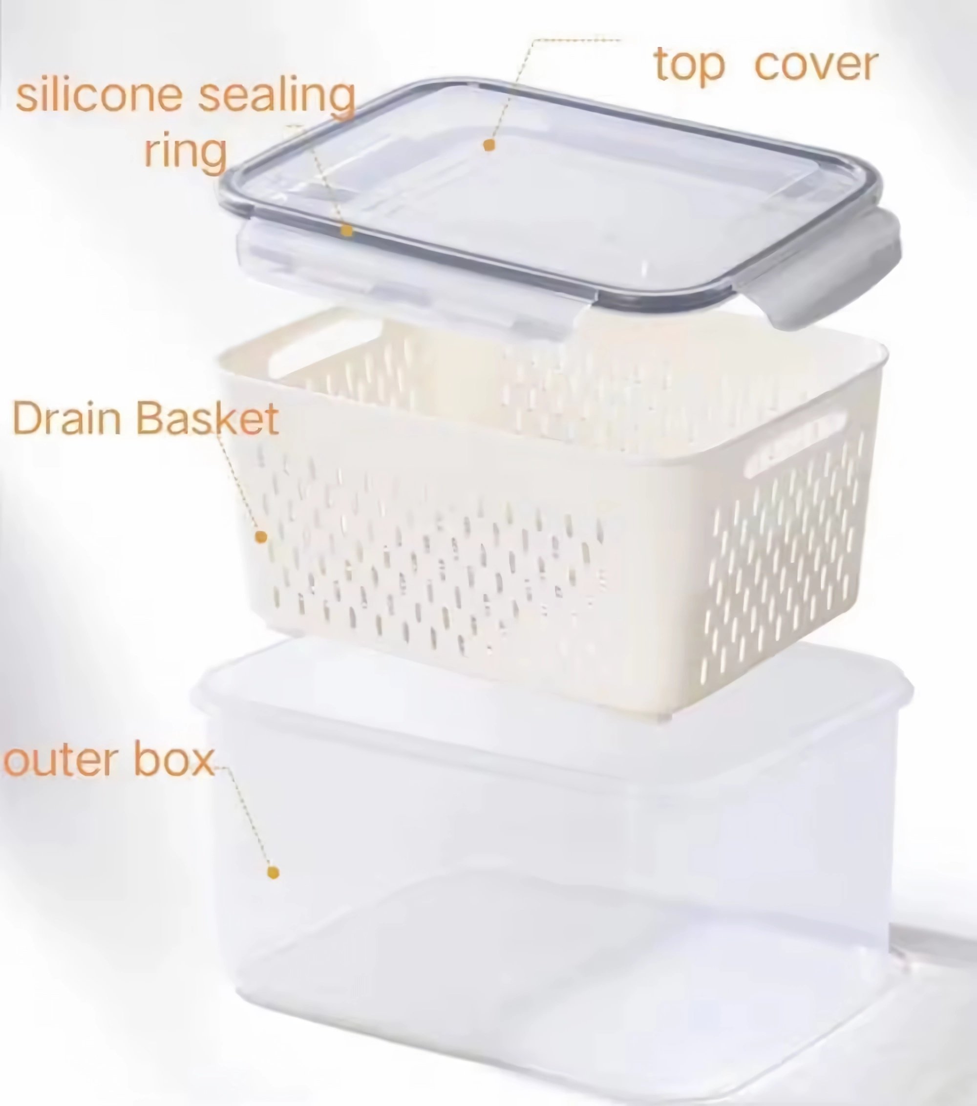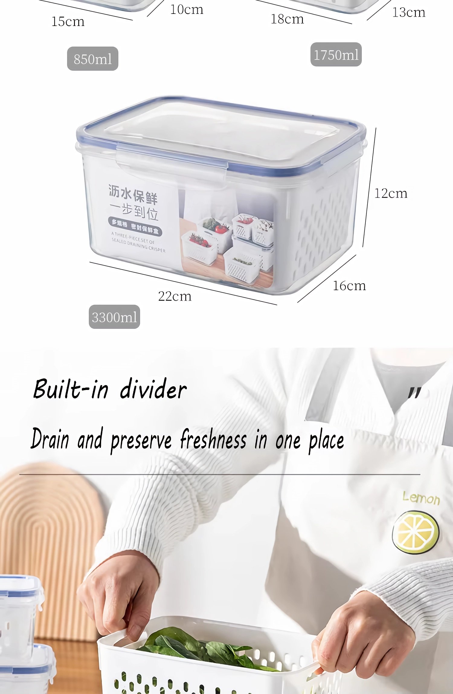 • 【4 in 1 Food Storage Containers】 The fruit storage for fridge are double-layered, both with a removable colanders for easy rinsing and filtering out the water on the surface of vegetables and fruits to reduce food spoilage. Produce stays fresh noticeably longer for two times. Combined soaking, washing, draining and storage functions, makes your life easier.
